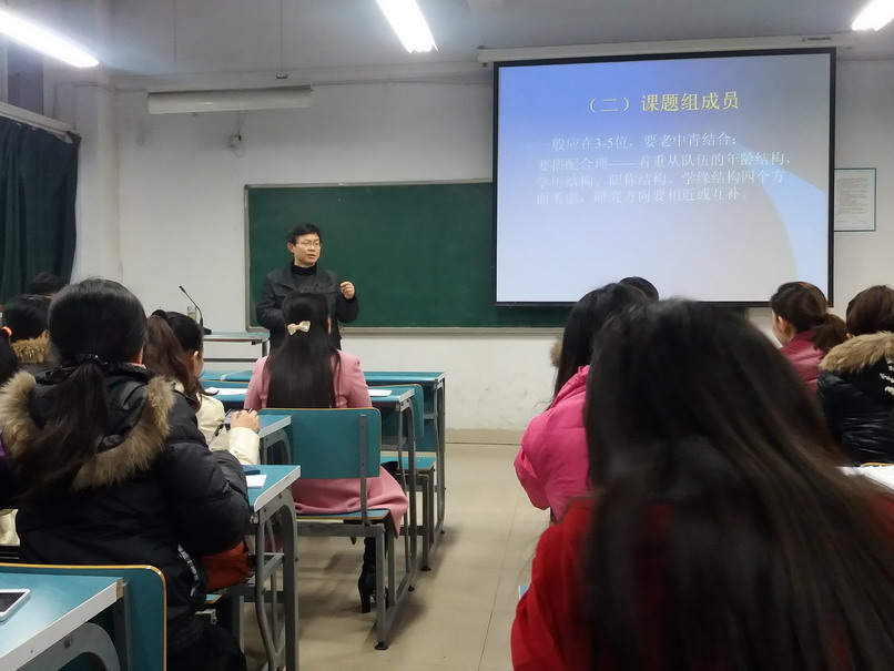12月10日下午,应科技产业处和外国语学院的邀请,上海外国语大学博士生导师孙胜忠教授在西区医教104教室作了题为《项目申报与申请书的撰写》的学术报告。报告会由外国语学院党委书记、院长石秀光主持。学院60余名青年教师聆听了报告。