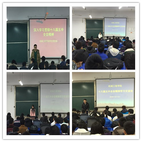 12月14日,机械工程学院学生党支部在新附2205举行党的十八届五中全会精神学习交流会。学院学生党支部书记、学生党员及优秀学生代表共128人参加了此次学习交流会。