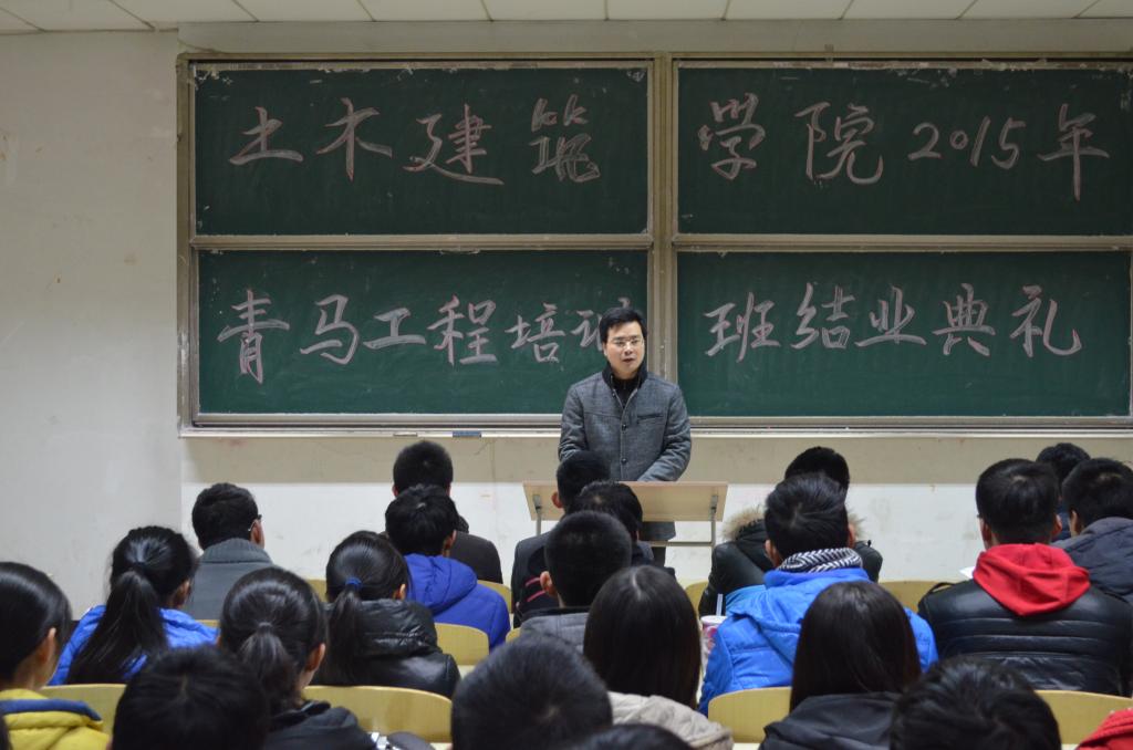 12月17日,土木建筑学院在北3308教室举行2015年“青马工程”培训班结业典礼。学院党委副书记丁志强,2015级辅导员杨旭东、张金松参加了结业典礼。典礼由学院团委副书记黄广顺主持。