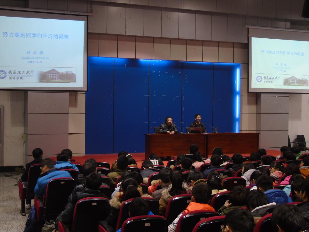 12月22日晚,在北区图书馆二楼报告厅,测绘学院院长赵志根为学院全体大一新生作了一场主题为“努力满足同学们学习的渴望”的专业报告会。报告会由院党委副书记吴军主持。大一新生辅导员参加了报告会。