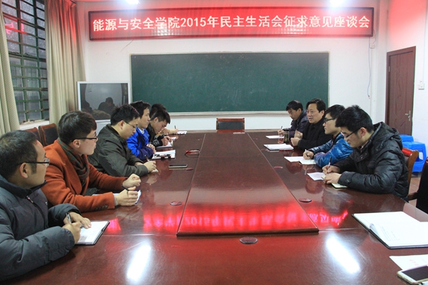 12月22日下午,能源与安全学院在学院214会议室组织召开了民主生活会征求意见座谈会,广泛听取师生意见和建议。学院党委书记欧阳连勤主持座谈会,党委副书记金德以及师生党员代表、党代会代表、党支部书记和部分支部委员参加了座谈会。
