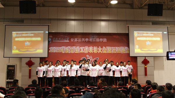 为表彰先进,树立典型,在全院内营造创先争优的良好氛围,12月25日晚,计算机科学与工程学院2015年度学生工作总结表彰大会暨新年晚会在北校区图书馆报告厅隆重举行。院党政领导、系主任、2015级班主任、全体辅导员,以及各年级学生代表500余人参加了大会。表彰大会由院党委副书记蒋群主持。