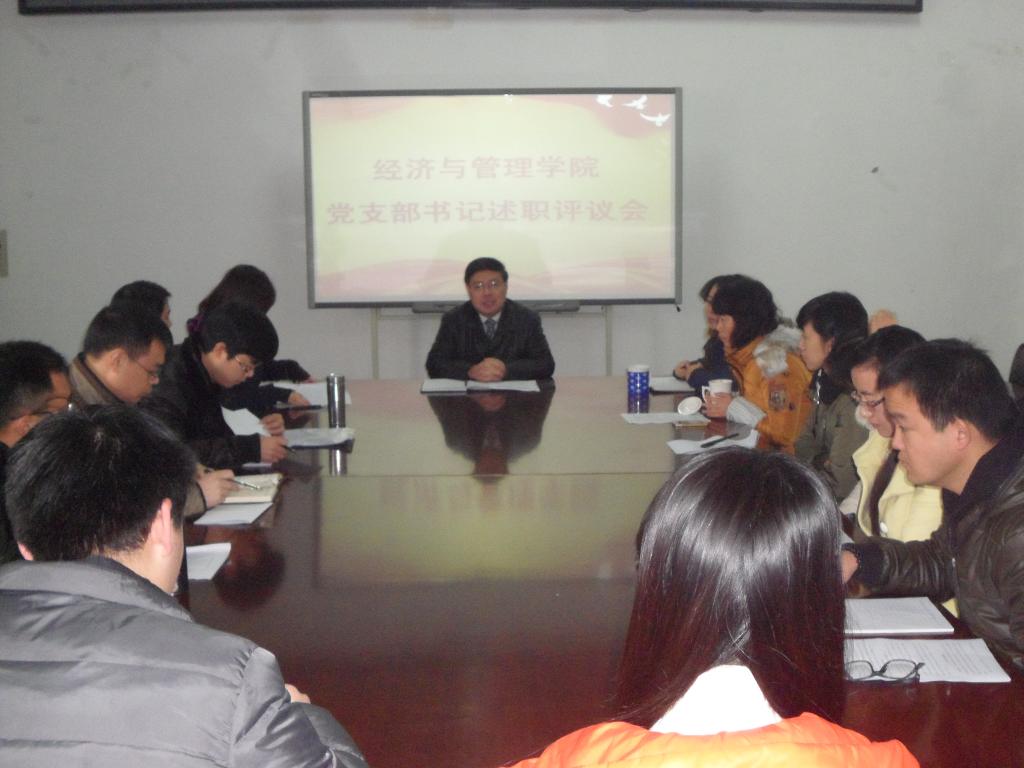 根据校党委关于党建工作三级联述联评联考实施办法的统一部署,12月25日上午,经济与管理学院党委在学院三楼会议室召开党支部书记述职会议。会议由学院党委书记李梁主持,学院党委委员、各党支部书记、支部委员、部分“两代会”代表及师生代表参加了会议。