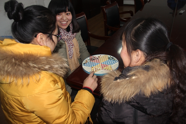 26日,在学院楼二楼会议室,学院女教职工进行了跳棋比赛,男教职工进行了扑克牌比赛。全院教职工积极参加联谊活动,现场气氛轻松、欢快。