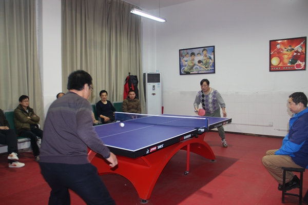 学院2015年教职工乒乓球赛于27日在学院楼一楼活动室举行。比赛前期在采矿系、安全系、院机关三个工会小组进行了内部选拔赛,每个工会小组各选5人组队。比赛采用单循环赛,11分赛制,队与队比赛为五盘三胜制,每小盘为三局二胜制。经过激烈角逐,安全工程系队获得第1名,院机关队获得第2名,采矿工程系队获得第3名。
