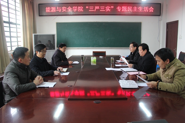 12月29日下午,能源与安全学院党委在院214会议室召开“三严三实”专题民主生活会。学院党委领导班子成员参加会议,院长石必明列席会议。会议由院党委书记欧阳连勤主持。