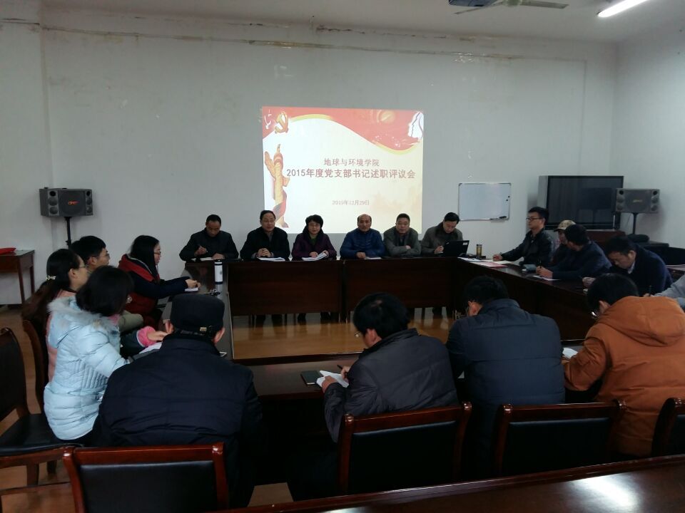 按照校党委关于党建工作三级联述联评联考实施办法的要求,12月29日下午,地球与环境学院党委在学院201会议室召开各党支部书记专题述职评议会。学院党委委员、各党支部书记和支部委员20余人参加会议。学院党委书记盛鹏飞主持会议。
