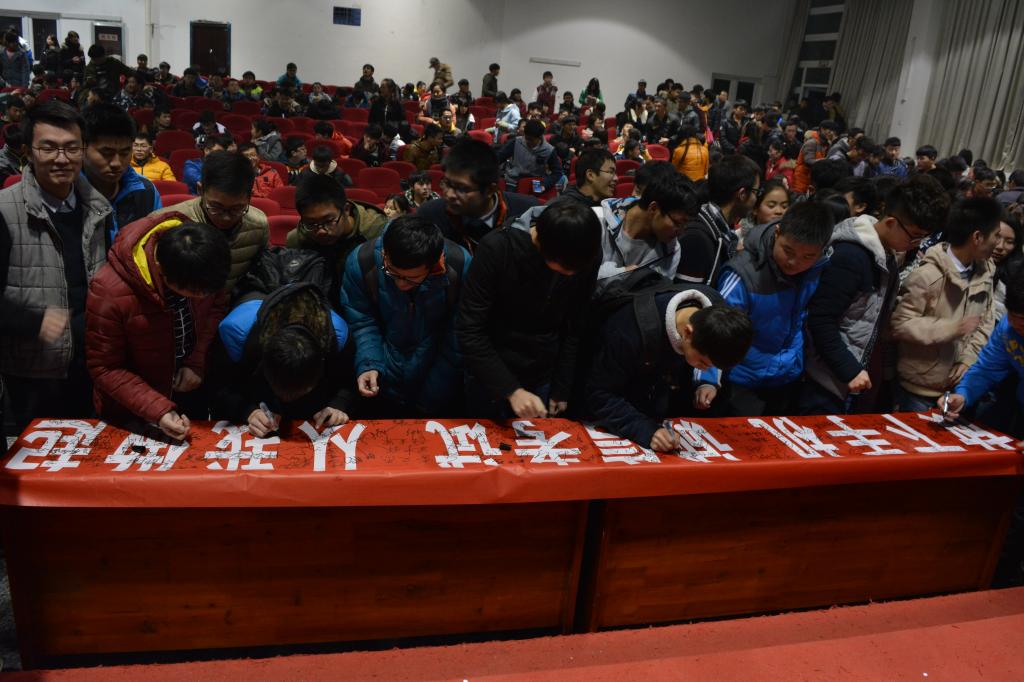 会后,还进行了“放下手机、诚信考试、从我做起” 主题签名宣誓活动。本次活动是大学生诚信教育的一部分,有利于增强同学们的诚信意识,自觉规范考试行为,为良好的考风、学风及院风建设打下了坚实的基础,同时有利于同学们积极乐观的应对考试。