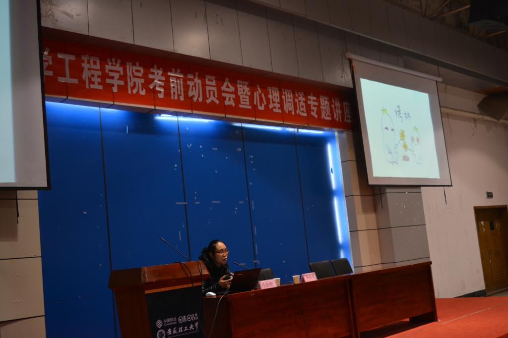 在心理调适专题讲座上,校心理健康教育中心马庆玲老师结合学生案例和自身工作经历,列举了大学生常见的压力类型及原因,并就如何心理调适提出了自己的见解,收到了学生们的欢迎。