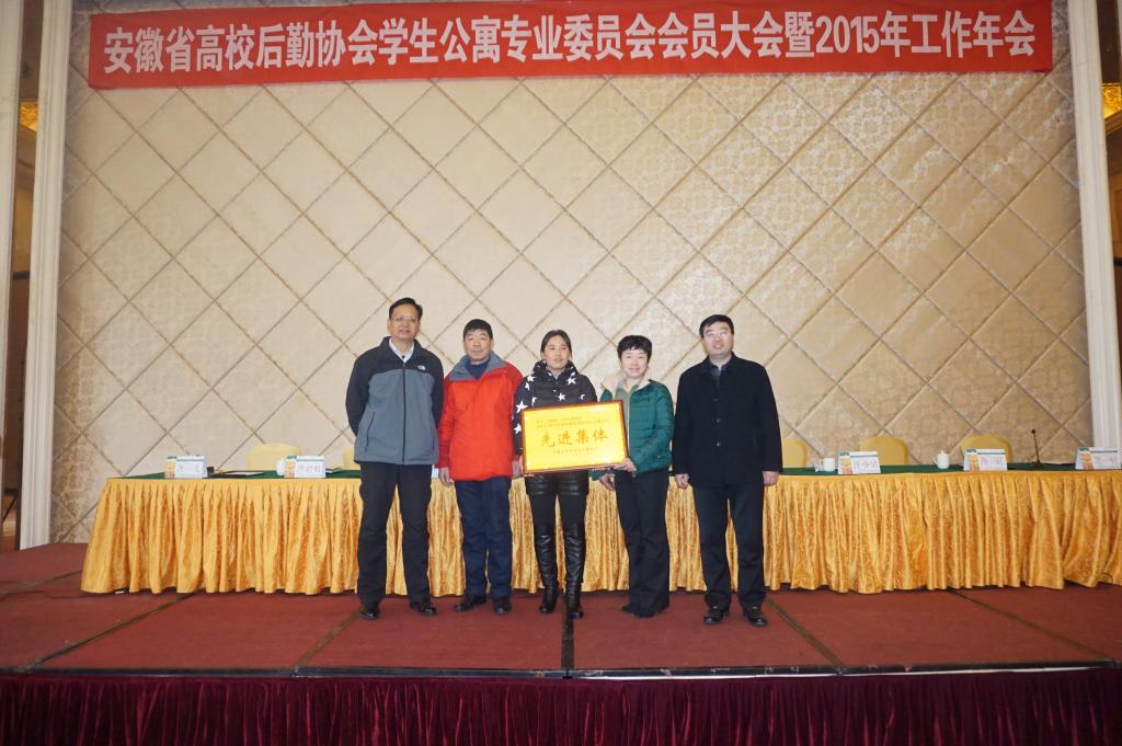2015年12月30日,由省高校后勤协会学生公寓专业委员会主办、安庆师范学院承办的安徽省高校后勤协会学生公寓专业委员会会员大会暨2015年工作年会在安庆召开。我校后勤集团获评2014-2015年度安徽省高校学生公寓工作先进集体。