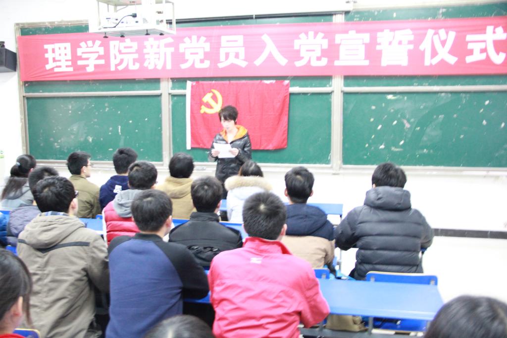 1月5日下午,理学院新党员入党宣誓仪式在院报告厅举行,28名新党员参加仪式。院党委副书记张旸、院团委副书记冷金兰出席了仪式。仪式由院党委秘书郑甜甜主持。