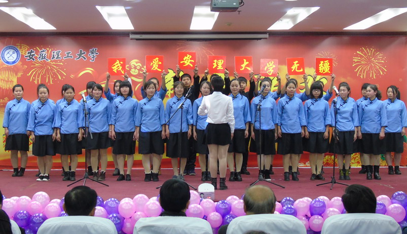 联欢会在英语15-2班的校歌合唱《大学无疆》中落下帷幕。