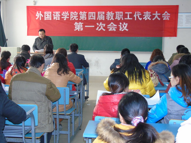 1月8日下午,外国语学院四届一次教代会暨工代会在医教103教室开幕,校工会副主席李颖和外国语学院党政领导、各代表团代表参加了会议。开幕式由行政副院长陶全胜主持。