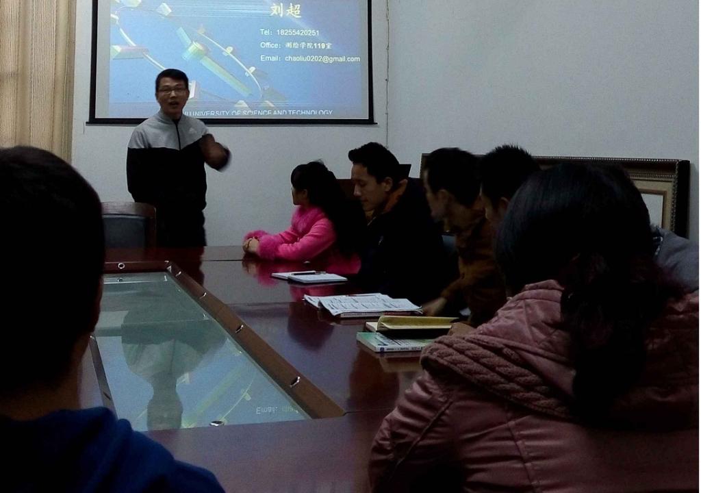 王磊博士在2015年11月13日作了题为《开采沉陷监测与控制》的报告,介绍了矿山及地下测量的前沿动态;赵志根教授在2015年11月30日作了题为《测绘在地质中的应用》的报告,分析了测绘学科在地学领域的广阔应用前景;刘超博士在2015年12月3日作了题为《抗差和最小二乘理论》的报告,讲授了抗差和整体最小二乘法等测量数据处理方面的热点理论;郭伟玲博士在2015年12月25日作了题为《坡度和坡长尺度效应与尺度变换研究》的报告,讲解了在坡度和坡长尺度效应与尺度变换方面的研究工作;赵明松博士在2016年1月8日作了题为《基于地表昼夜温差的平缓地区土壤有机质制图》的报告,介绍了土壤有机质制图方面的前沿知识。