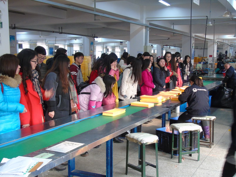 同学们在公司相关人员的陪同下,依次参观了公司生产车间以及质检中心,了解了成品的生产、加工、检验、包装、装箱、运输、销售等各个步骤,听取了外贸操作流程的介绍,对询盘、报价、下单、付款、物流等各个环节有了比较直观的认识。有意就业的学生还就薪资待遇等就业条件与公司负责人进行了沟通交流。