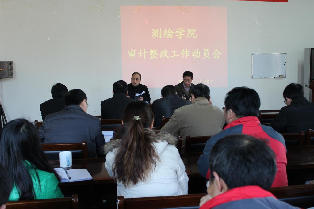1月15日下午,测绘学院在201会议室召开审计整改工作专题会议,传达学校会议精神,贯彻落实学校审计整改工作。学院党委书记陈艺主持会议,院长赵志根传达学校审计整改工作动员会精神。全院教职工参加会议。