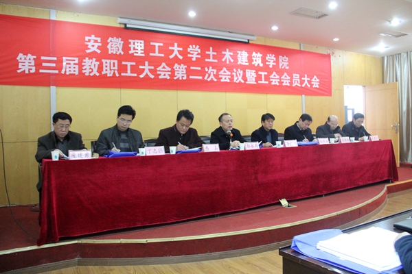 1月15日,土木建筑学院第三届教职工大会第二次会议暨工会会员大会在校图书馆西会议室隆重召开。校长郭永存、校工会主席李广田应邀出席大会。全体教职工及工会会员参加了会议。大会开幕式由学院党委书记盛真主持。