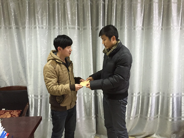 学院党委副书记范洪喜详细询问了家庭困难学生党员,2014级陈海波和2012级罗林同学的家庭情况、学习和就业情况,叮嘱他们假期往返途中注意安全,并希望他们在新的一年里,学业上取得新的进步、积极服务社会、参与学校各项集体活动、充分发挥学生党员的先锋模范带头作用。受到慰问的同学们感谢学院领导的关心,并表示在未来会再接再厉,努力提高综合素质,争取做一名优秀的共产党员。
