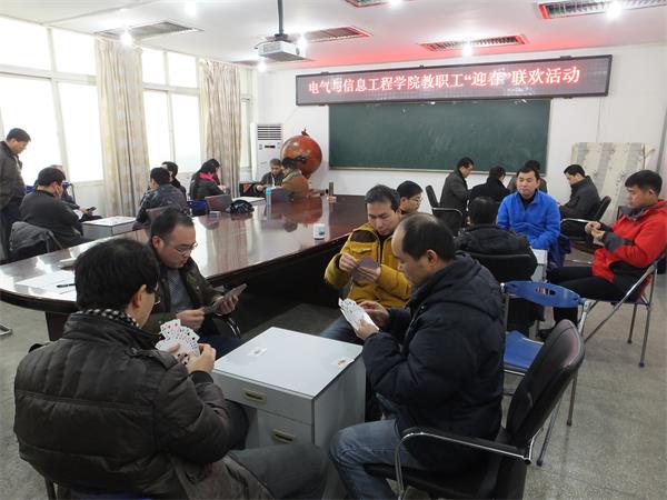 下午2点,学院教职工“掼蛋”比赛开始,各系、实验中心和办公室均派出代表强强对决。有的桌上你追我赶、难分高下;有的团队一路领先、胜利在望;观看的则出谋划策,帮强扶弱。比赛增进了彼此了解,活跃了气氛。