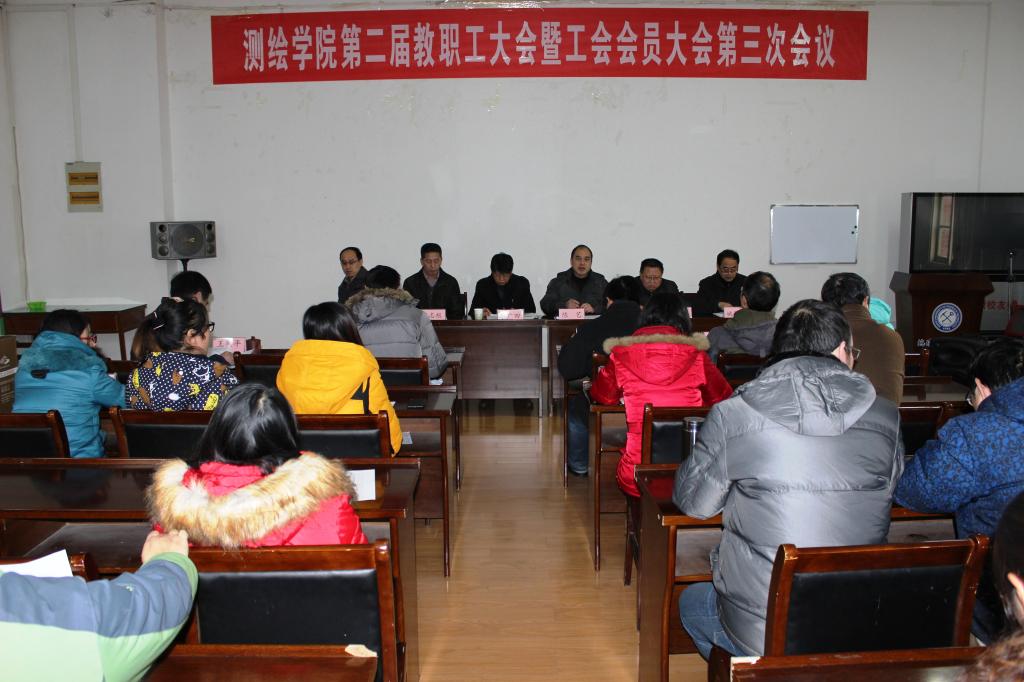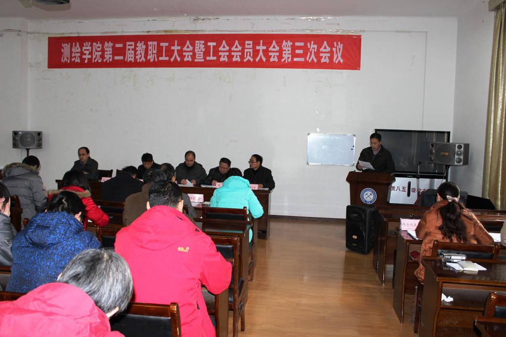 1月22日下午,测绘学院第二届第三次教职工大会暨工会会员大会在院201会议室隆重召开。校工会主席李广田应邀出席会议。全体教职工及工会会员参加了会议。大会开幕式由院党委书记陈艺主持。