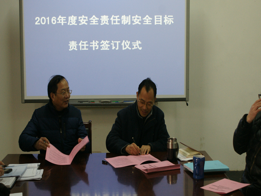 会上,学院院长、党委书记分别与各系主任、学生辅导员签订了《2016年度安全目标责任书》。