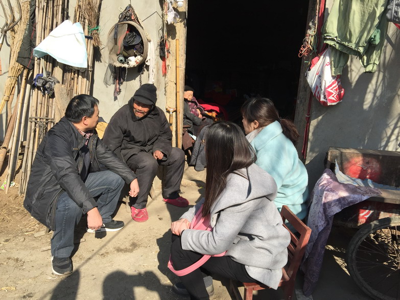 石秀光一行与老人拉家常(摄影:张向林)