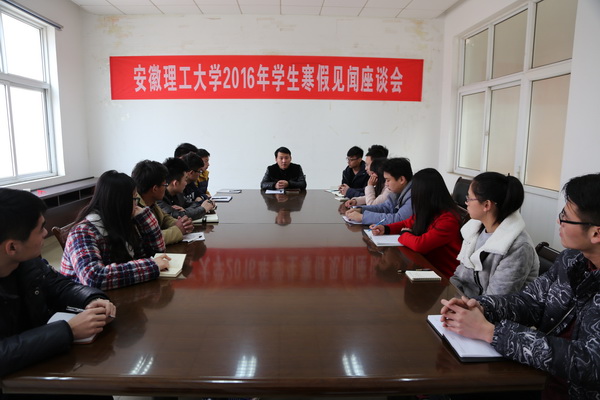 在座谈中,同学们就2016年寒假见闻进行了广泛交流,畅谈了家乡和学校的新变化,有对时事政治、社会热点的关注,有对个人参加学术科技创新活动的分享,有对投身社会实践和参与社会调查的感悟,也有对加强学习、充实提高的体会。供给侧改革、经济新常态以及即将召开的2016年“两会”等都是同学们普遍关注的话题,学校新校区建设进展也颇受与会同学的关注。总体上看,同学们普遍为家乡风貌改变、社会风气的改观而高兴,为学校发展和祖国强盛而振奋。