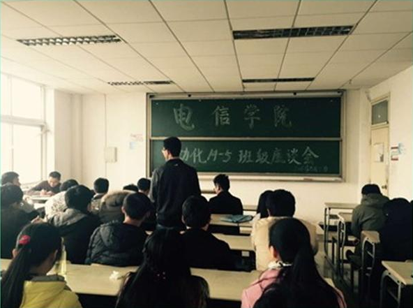 3月7日下午,电气与信息工程学院党委副书记徐关怀和辅导员衡连伟,先后深入自动化14-2班和自动化14-5班与两个班全体学生进行了两场“面对面、心交心”的座谈,对电信学院2015年学风建设效果进行“回头看”,听取广大学生的自我剖析以及对班级班风学风建设的意见和建议。