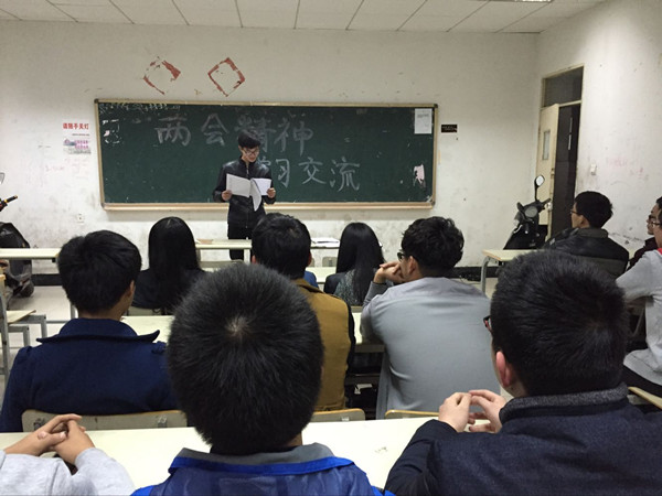 3月16日晚、18日下午,机械工程学院团委分别组织学生会骨干、班级团支书在学生会办公室、红楼107教室学习全国“两会”精神。