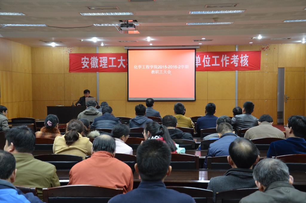 3月18日下午,化学工程学院在图西会议室召开教职工大会,总结2015年工作,部署2016年工作。学院党政班子成员及全体教职工出席大会。会议由副院长邢宏龙主持。