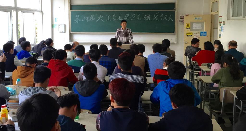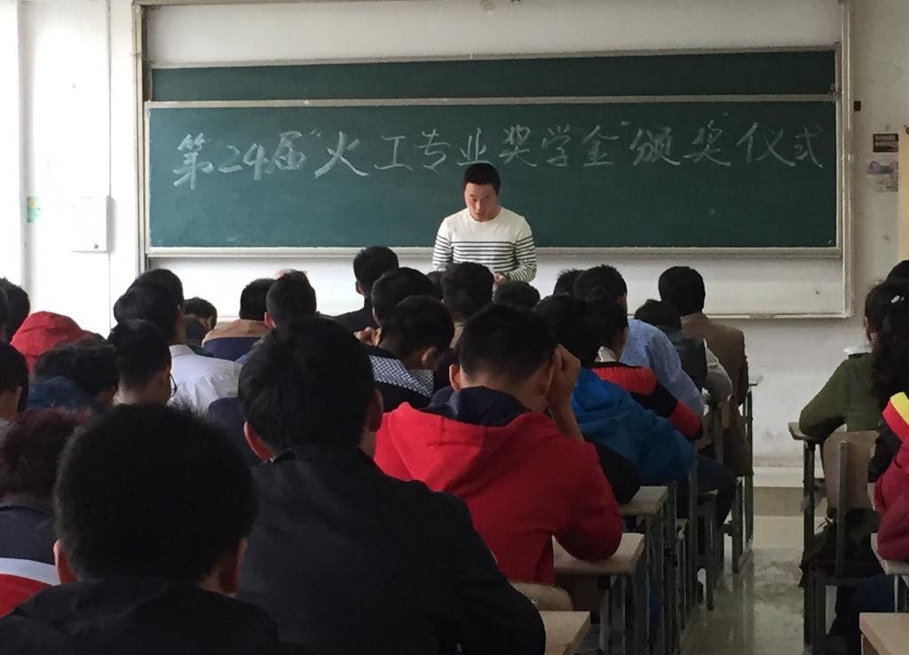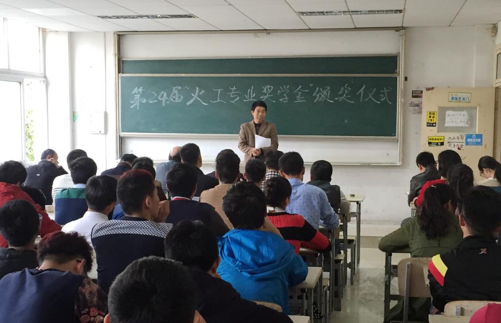 4月1日下午,第24届火工专业奖学金表彰大会在北区3206教室隆重召开。弹药工程与爆炸技术专业知名校友、安徽江南化工股份有限公司宁国分公司副总经理鲍传齐应邀出席并为获奖学生颁奖。化学工程学院党委书记徐冬生、党委副书记徐泽绵出席表彰大会。会议由弹爆系主任汪泉主持。百余名师生参加表彰会。