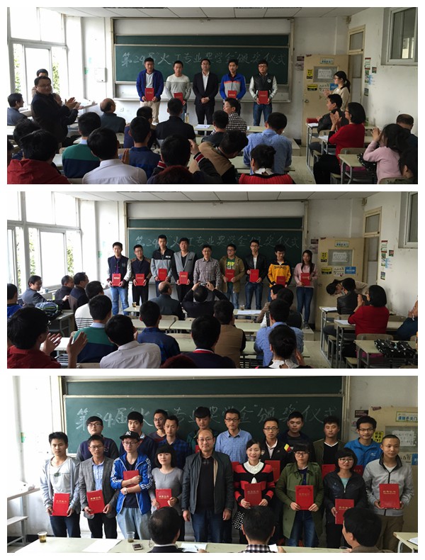 鲍传齐、徐冬生、郭子如分别为2012级弹药工程与爆炸技术、特种能源与烟火技术专业获得一、二、三等奖学金的学生颁发了获奖证书。