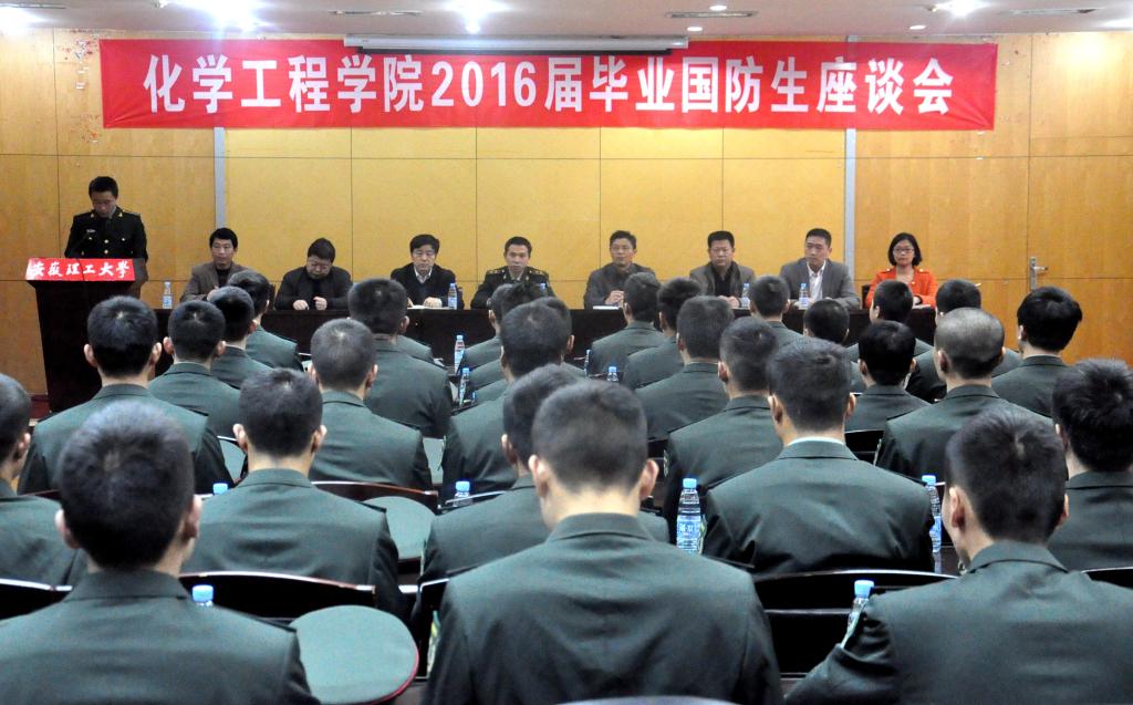 4月5日下午,化学工程学院2016届国防生毕业座谈会在图书馆西会议室举行。院党委书记徐冬生、院长何杰,陆军驻安徽理工大学选培办主任金绍启,教务处副处长赵前进,学生处副处长陈楠,保卫处副处长刘训强,化学工程学院全体国防生及国防生辅导员出席了本次座谈会。会议由院党委副书记徐泽绵主持。
