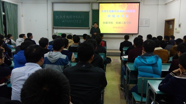4月6日晚,机械工程学院在北实203教室召开2016年大学生创新创业训练计划项目申报动员会。创新学院副院长张东速、机械工程学院副院长王开松、学院辅导员和一二三年级本科学生200余人参加了动员会。