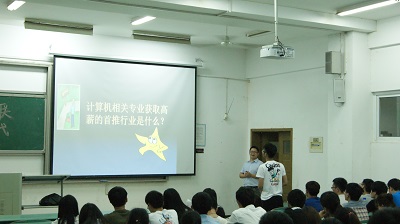 讲座中,马兰军从计算机就业前景、计算机专业薪酬、计算机专业就业知识需求、计算机未来发展前景等方面,为大家形象生动地描绘了互联网时代的计算机专业的现状及发展前景。他深入浅出,幽默风趣的讲座,为同学们打开了一扇宏伟的大门,大家深刻认识到计算机专业的蓬勃发展以及互联网时代技术革新的重要性,对计算机专业美好的前景充满期待和憧憬,更加明确了未来学习和发展的方向。