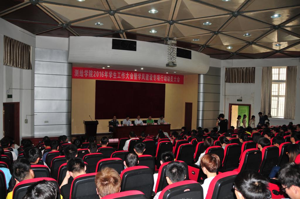 4月15日下午,测绘学院在校本部六角楼召开2016年学生工作大会,学院全体领导班子成员出席会议。院长赵志根主持大会。