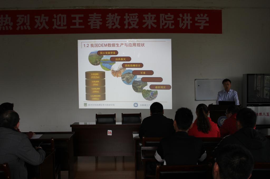 4月20日下午,应校科技产业处、测绘学院邀请,滁州学院地理信息与旅游学院院长王春教授在学院201会议室作了题为《形态高保真数字地形建模技术》的学术报告。报告会由测绘学院教学科研副院长徐良骥教授主持。学院师生80余人聆听了报告。
