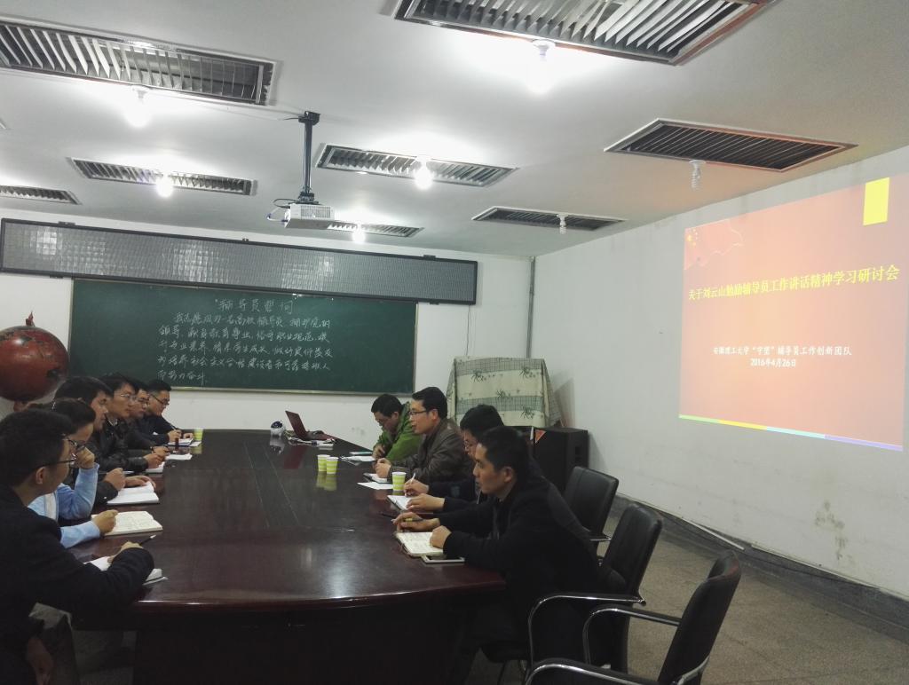 4月26日,校“守望”辅导员工作创新团队在电气与信息工程学院三楼会议室举办关于刘云山同志勉励辅导员工作讲话精神的学习研讨会。学生处副处长涂有胜,电信学院党委副书记徐关怀,“守望”团队全体成员和电信学院辅导员代表参加了此次会议。
