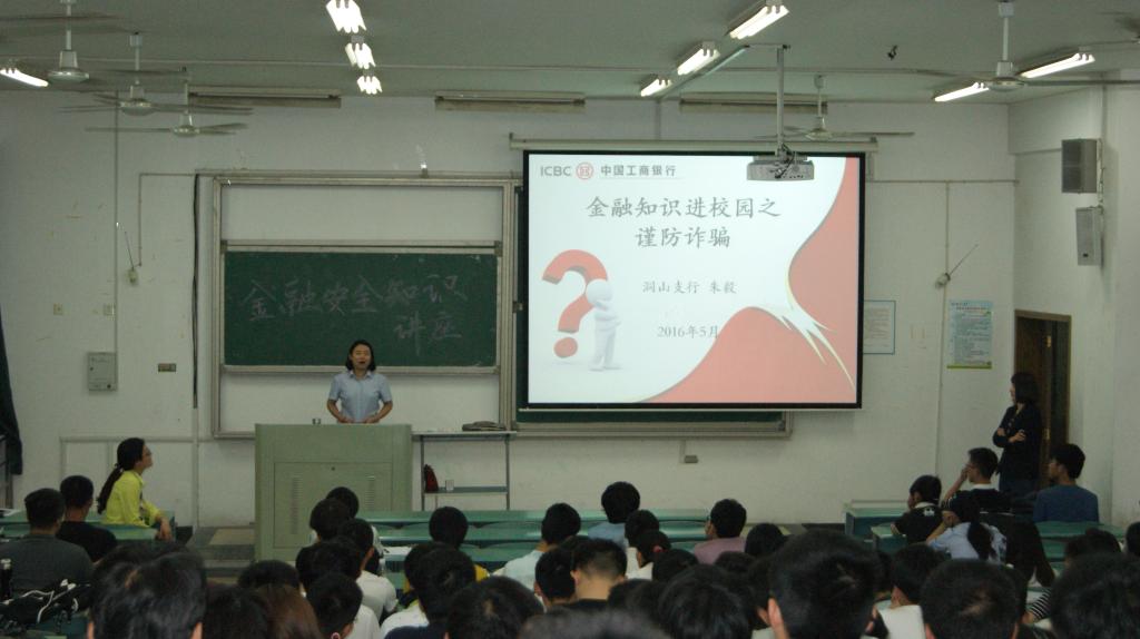 5月4日晚,计算机学院邀请工商银行工作人员朱毅在北区实验楼505教室开展了《金融安全知识》讲座。学院党委副书记蒋群主持讲座,全院100多位学生聆听了本次讲座。