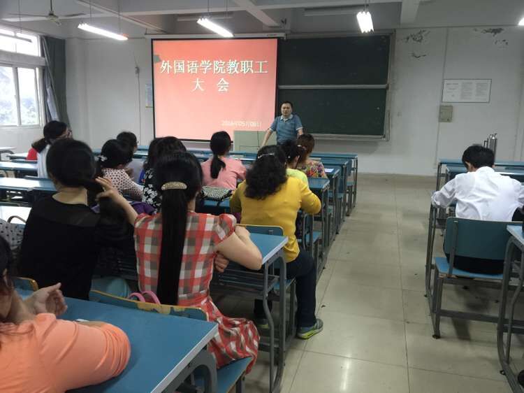5月6日下午,外国语学院在医教301教室召开全体教职工大会。院党委书记、院长石秀光主持会议并讲话。