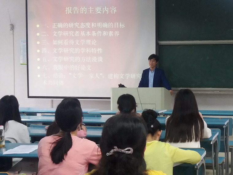 隋红升首先从研究态度谈起,认为青年师生要立志从事文学研究必须首先树立正确的研究态度和明确的目标。“研者,磨也。”只有多读书并深入思考,才能发现现象背后的本质,才能发现真理,并谋求解决问题的出路。根据西方文学理论来源的多元性,他指出,文学研究的最主要特征是跨学科性,强调人物和意象是文学研究的两大切入点。隋红升特别提醒广大青年师生,从事文学研究必须具备以下三个基本学术功底:文本细读能力(读懂、读透并构建自己的思想)、理论把握与运用能力以及对现实问题的敏感性。