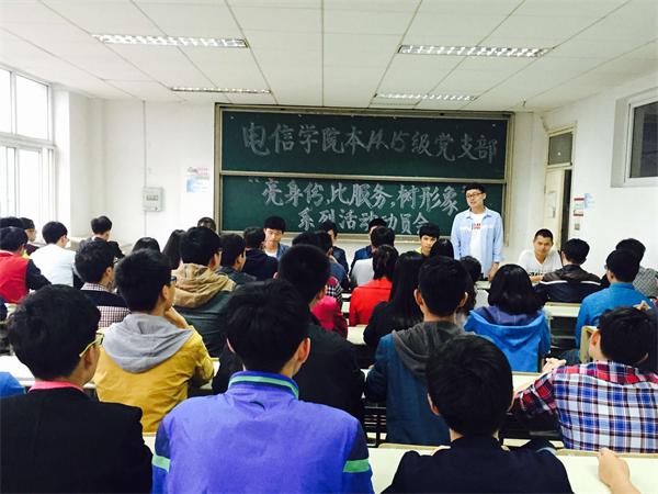 按照本支部“两学一做”工作计划安排,5月9日下午,电气与信息工程学院本14、15级党支部在北校区3507教室召开了“亮身份、比服务、树形象” 活动动员会。支部全体学生党员及63名发展对象参加了动员会。
