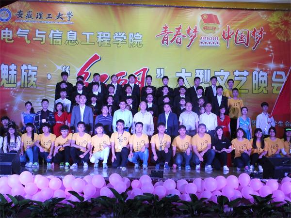 点燃五月激情,绽放青春梦想。5月14日晚,以“青春梦•中国梦”为主题的电气与信息工程学院“红五月”大型文艺晚会,在北校区大学生素质活动中心精彩上演。副校长叶醒狮,电信学院院长李敬兆,校学生处副处长陈楠,校团委副书记黄胜龙,电信学院副院长祝龙记、虞尚元、欧阳名三、党委副书记徐关怀和800余名青年学生一同观看了演出。