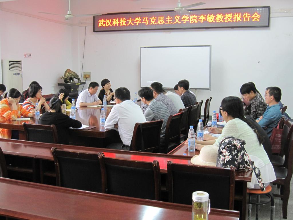 5月20日上午,应马克思主义学院和校科技产业处的邀请,武汉科技大学马克思主义学院副院长李敏教授来校作了题为“马克思主义理论研究如何‘接地气’”的报告。马克思主义学院副院长孙功教授主持报告会。