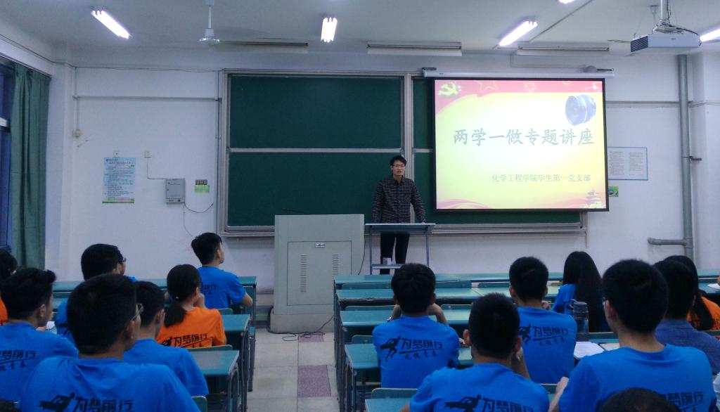 切实推进基层党支部“两学一做”学习教育,5月18日晚,化学工程学院党委学生第一党支部特邀请马克思主义学院代先祥老师为全体师生党员、入党积极分子做中共一大党史专题讲座。