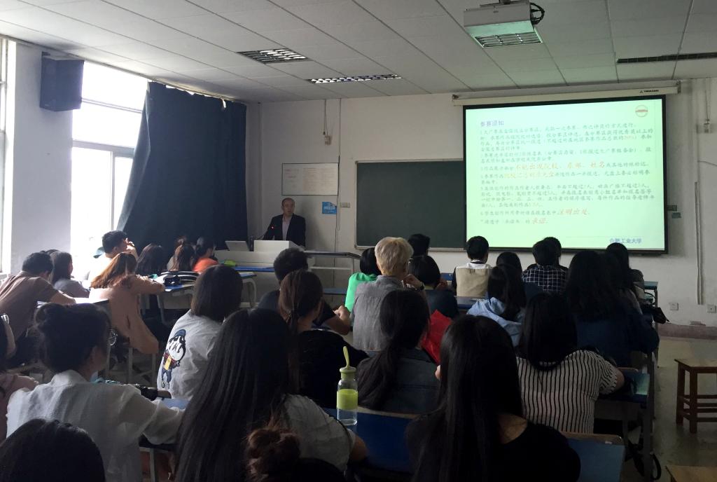 5月20日下午,人文学院邀请合肥工业大学建筑与艺术学院广告系主任王忠副教授,围绕第八届中国大学生广告艺术大赛,在1406教室为人文学院动画系师生举行了一场别开生面的专题宣讲会。动画系全体教师、动画专业学生以及来自淮南师范学院的师生共100余人参加了此次宣讲会。