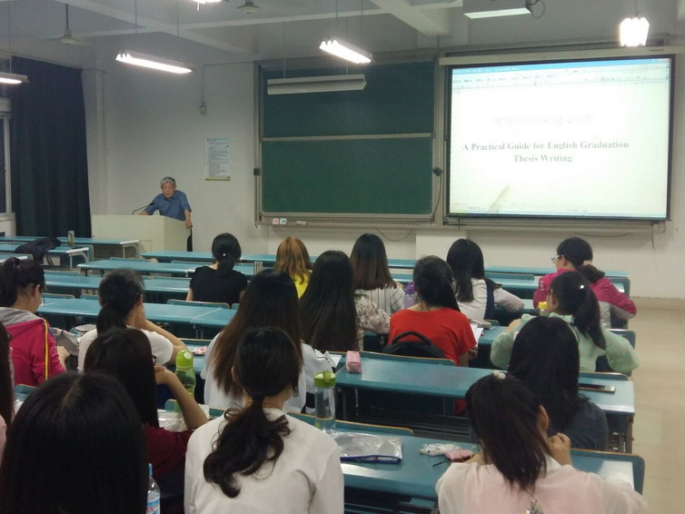 5月25日晚,外国语学院邀请中国民主建国会淮南市委会原主委、淮南市政协原副主席、院关工委副主任程永生教授在医教402教室作英语专业毕业论文写作指导专题讲座。