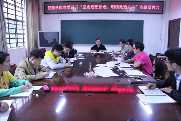 5月27日下午,能源与安全学院召开“坚定理想信念,明确政治方向”专题研讨会。学院党委中心组成员和支部书记参加会议。学院党委书记欧阳连勤主持会议。