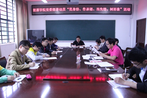 为推动“两学一做”学习教育深入扎实开展,引导全院党员立足岗位做贡献,充分发挥先锋模范作用,5月27日下午,能源与安全学院召开党委扩大会,部署动员“亮身份、作承诺、当先锋、树形象”活动。