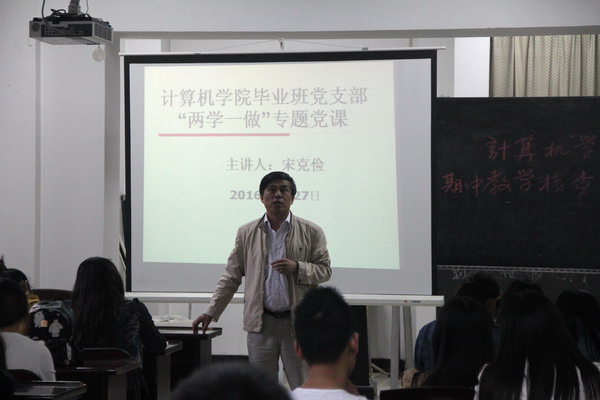 5月27日下午,计算机学院在院427会议室举办2016届毕业班党员“两学一做”专题党课。学院党委书记宋克俭担任主讲,60名毕业班党员聆听了此次专题党课。